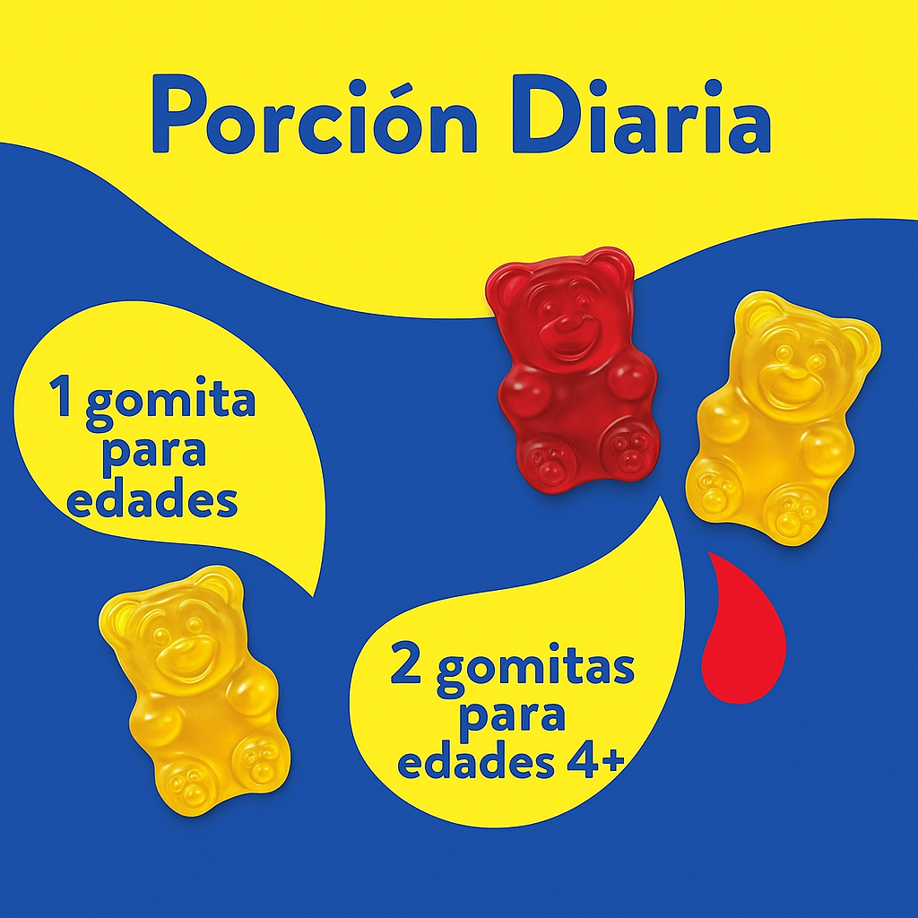 Su presentación en gomitas hace que sea fácil y agradable de consumir para los niños, convirtiéndolo en una alternativa práctica frente a los suplementos tradicionales.