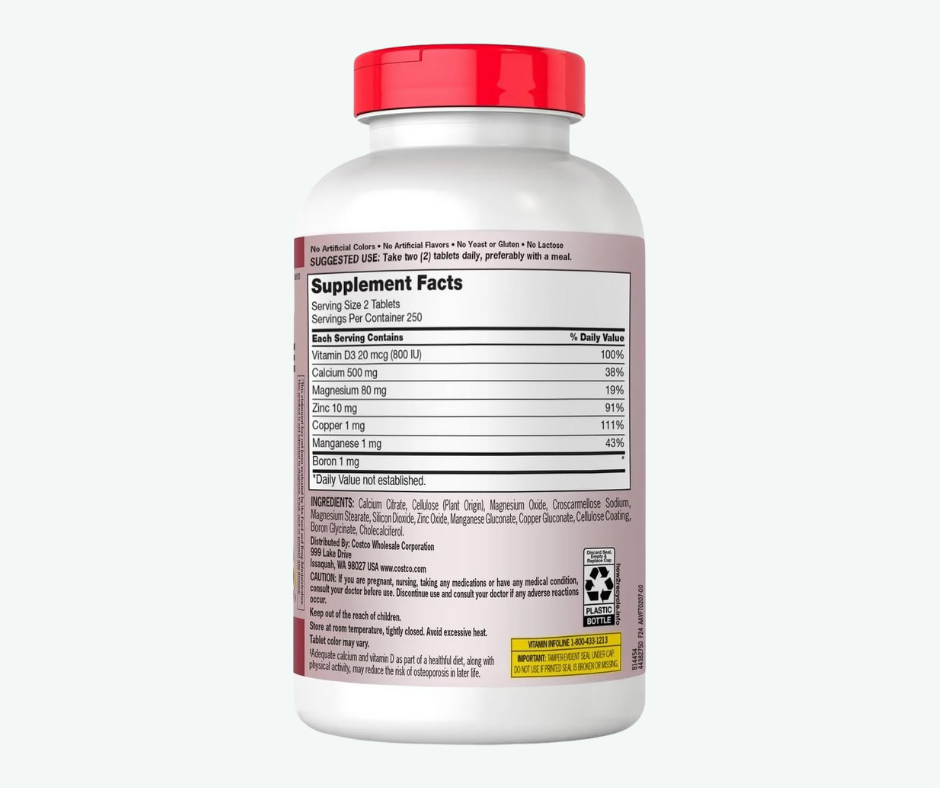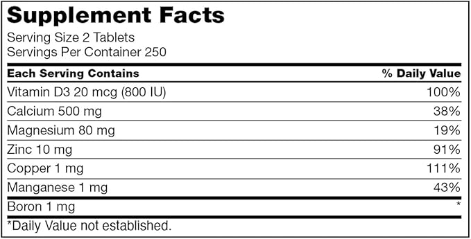Composición: Cada tableta contiene 500 mg de calcio (en forma de citrato), 200 mg de magnesio y 25 mg de zinc.