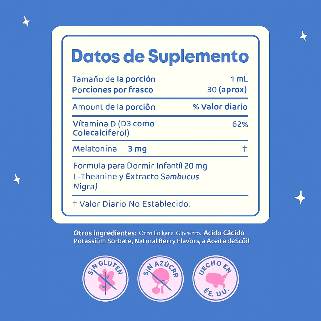 Contiene extracto natural de saúco (elderberry) y melatonina.